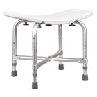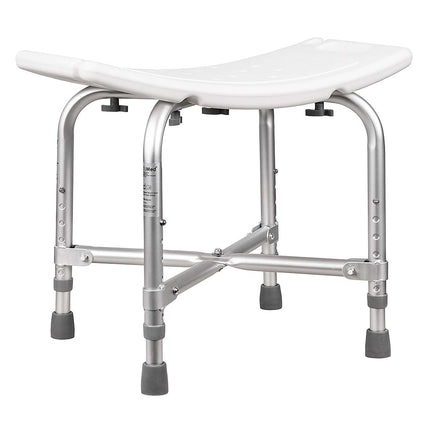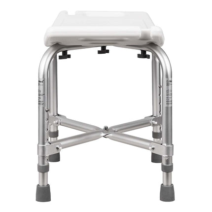 DURABLE & LIGHTWEIGHT: Shower stool with blow moulded polymer seat and rust proof aluminium frame. Skid resistant rubber tips have a wide base and drainage holes.