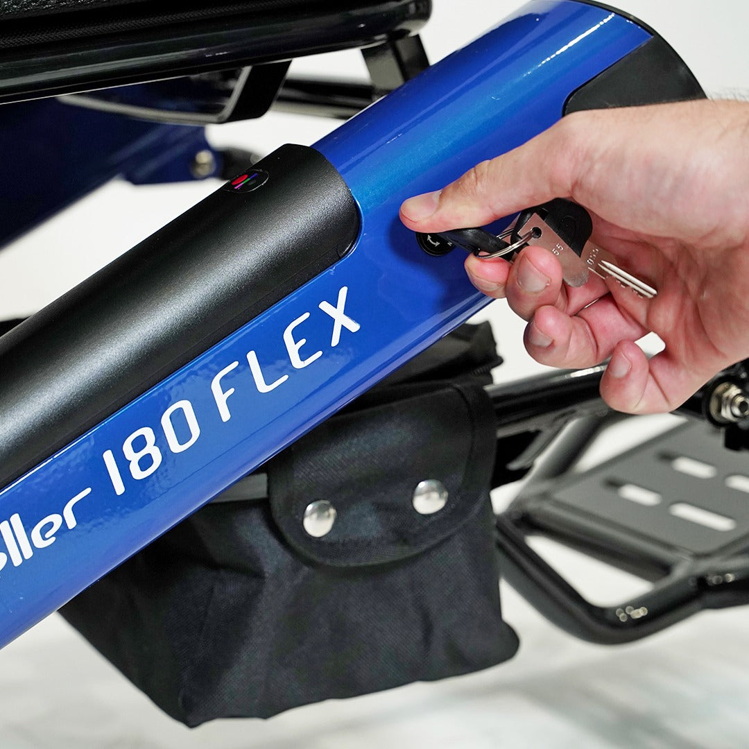The E-Traveller 180 FLEX is the upgraded version of the popular E-Traveller 180, featuring enhanced design elements for superior comfort and convenience. This model comes equipped with a large padded contoured cushion, flip-up armrests, an under-seat storage bag, and a tension-adjustable backrest. With solid puncture-proof tires and two easily removable lithium batteries, the E-Traveller 180 FLEX is designed for maximum ease of use and reliability.
