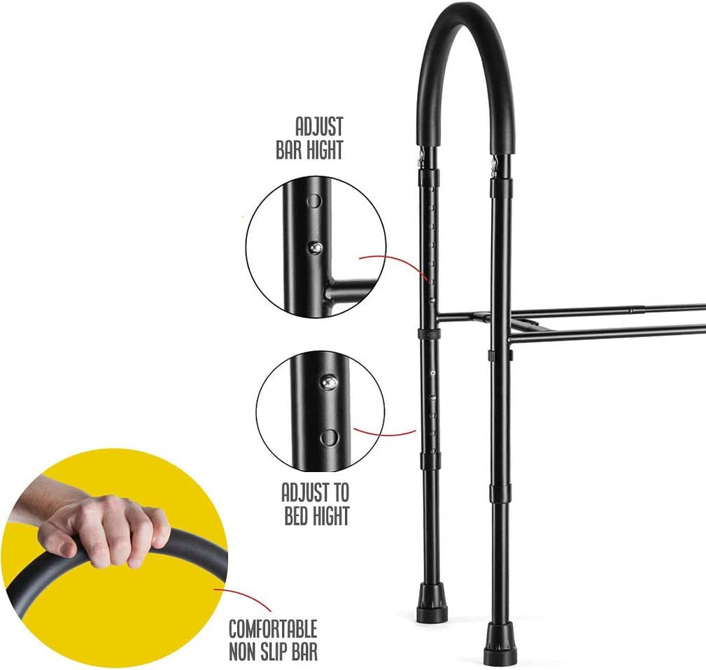 Bed assist rail for a safe and secure grip to help anyone with physical limitations or injuries to get in and out of bed unassisted.