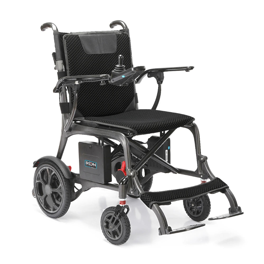The Ikon Enduro Powerlite Folding Carbon Fibre Electric Wheelchair combines cutting-edge technology with superior comfort and convenience. Built with a carbon fibre frame, this lightweight wheelchair is designed for portability without compromising durability. It folds very compactly for easy transport and storage, making it ideal for travel and everyday use. With its motorised or freewheel options, advanced onboard controller, and versatile features, the ENDURO Powerlite is the perfect solution for those seeking mobility with ease.