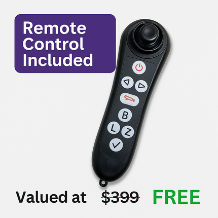 - Optional kit available to mount the joystick on the back for carer control.