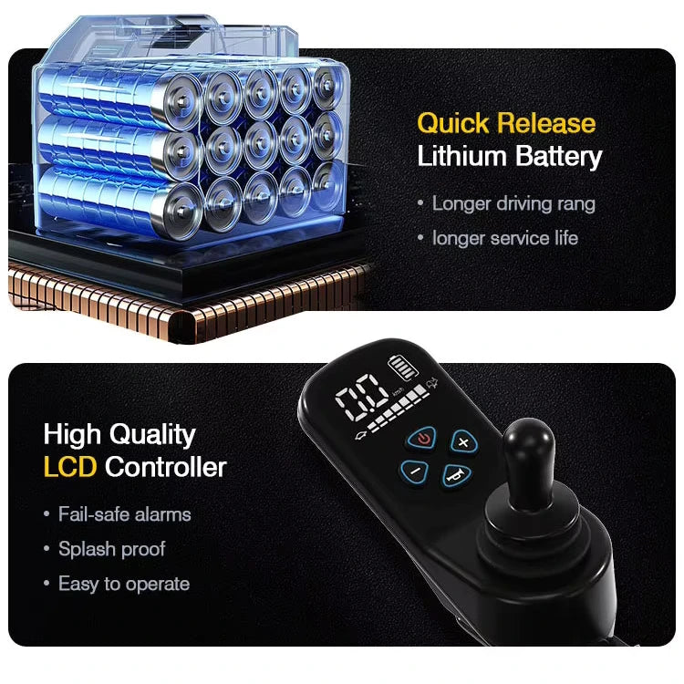 - Electromagnetic Brake: Enhances safety and control while using the wheelchair.