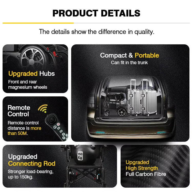 Ultra-Lightweight 13.2KG, Compact, and Durable Carbon Fibre Electric Wheelchair