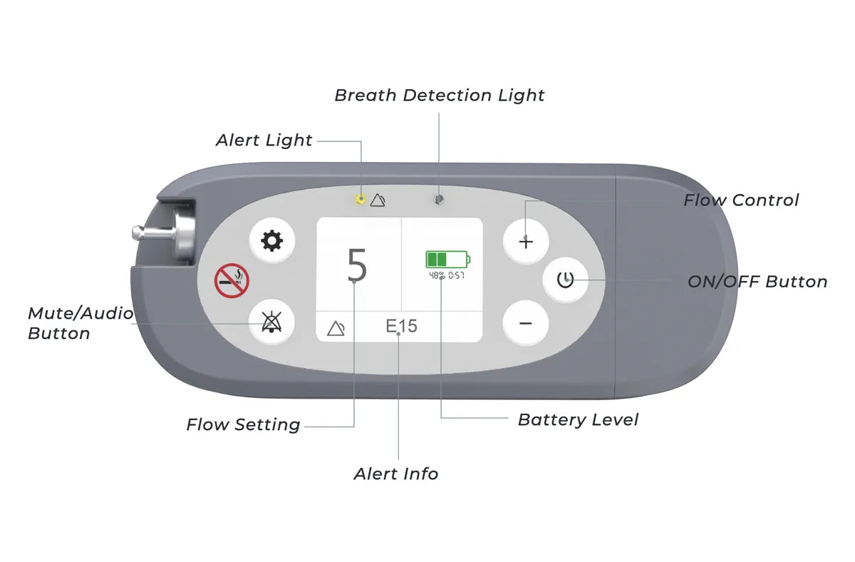 • Pulse Dose Oxygen Delivery: Responsive, breath-synchronized oxygen pulses conserve power and deliver efficient therapy.