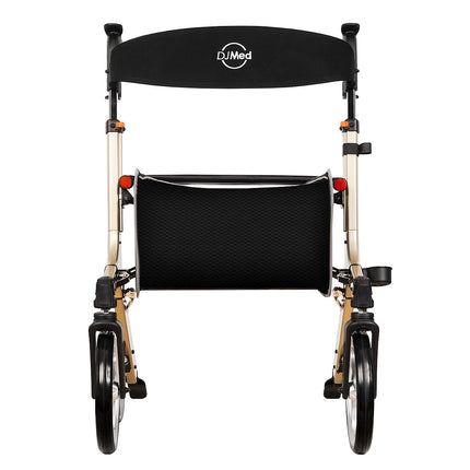 HUGE WHEELS: The 10 inch front wheels provides better stability and security when you rolling on the rollator uneven surfaces. Compared with rollators with 8 inch wheels, our product can better accommodate rough or soft ground such as: lawn, sand, forest, etc. The two-size wheel system is much easier to push over any surface, including floors and carpets.