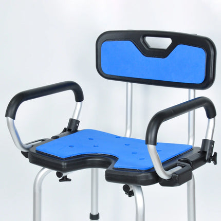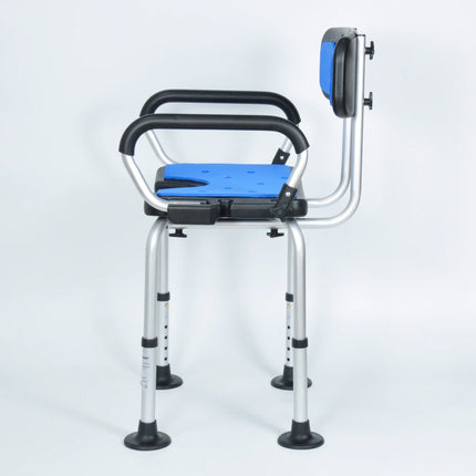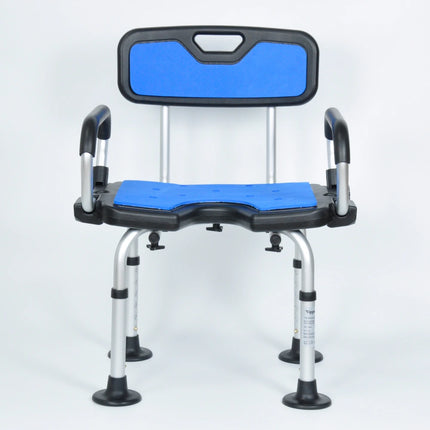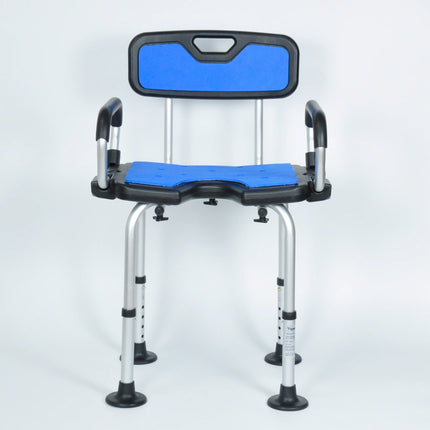 The Height Adjustable Shower Chair is designed to provide a safe and comfortable bathing experience for individuals who need extra support. Its soft blue padding on both the seat and backrest ensures comfort, while the rust-proof aluminum frame and non-slip feet enhance safety and durability. With height-adjustable legs, easy assembly, and a convenient shower head holder, this chair is the perfect choice for enhancing independence and safety in the bathroom.