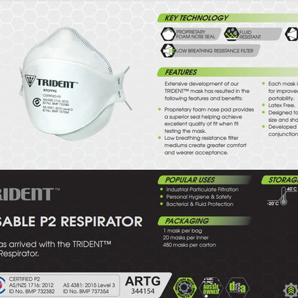 The Trident™ P2 Industrial Surgical Respirator is designed for high-efficiency particle filtration in professional environments. Trusted across Australia in healthcare, construction, and general workplaces, this P2-certified respirator offers secure, breathable comfort for extended wear.